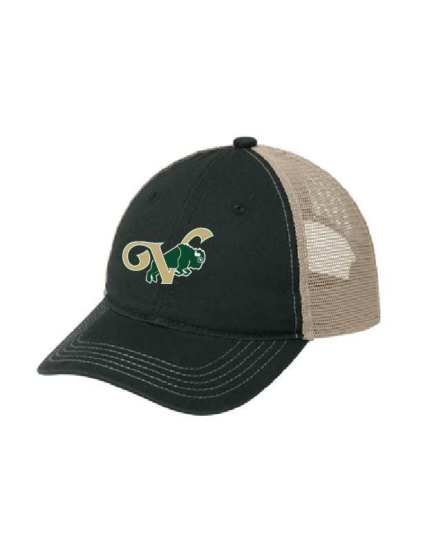 Fabric: 100% cotton twill front panels, 100% polyester mesh mid and back panels