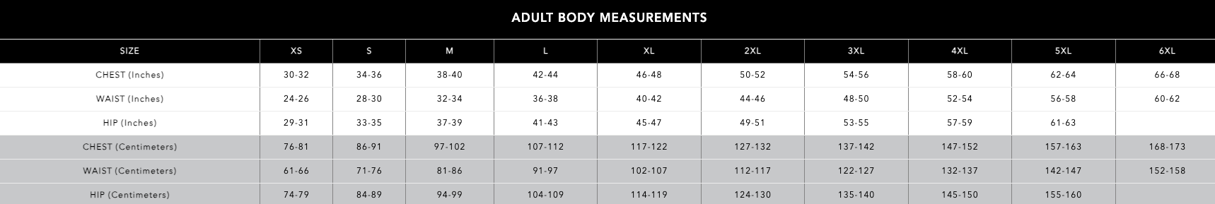 S, M, L, XL, 2XL, 3XL