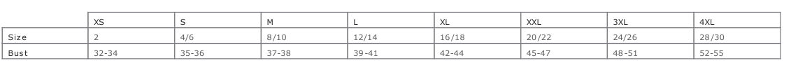 XS, S, M, L, XL, 2XL, 3XL, 4XL